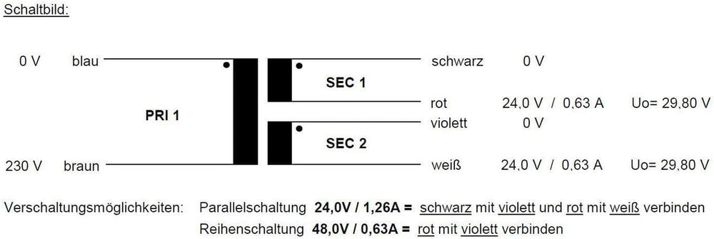 Sedlbauer Ringkerntransformator 30VA 2x24V für Audio, Industrie, Halogen und Schienen - 230V Eingang