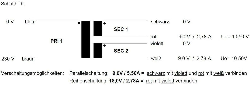 Sedlbauer Ringkerntrafo Transformator 50VA 2x9V für Audio, Industrie, Halogen und Schienensysteme -