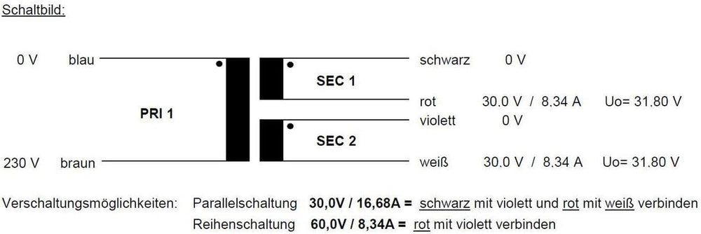 Sedlbauer Ringkerntrafo Transformator 500VA 2x30V für Audio, Industrie, Halogen und Schienensysteme