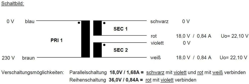 Sedlbauer Ringkerntrafo Transformator 30VA 2x18V für Audio, Industrie, Halogen und Schienensysteme -