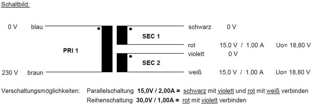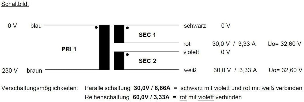 Sedlbauer Ringkerntrafo Transformator 30VA 2x15V für Audio, Industrie, Halogen und Schienensysteme -