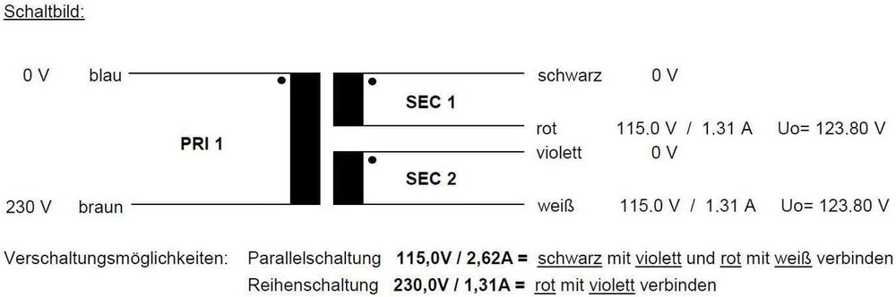 Sedlbauer Ringkerntrafo Transformator 300VA 2x115V für Audio, Industrie, Halogen und Schienensysteme