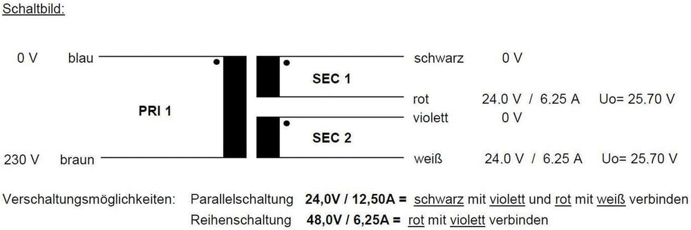 Sedlbauer Ringkerntrafo Transformator 100VA 2x24V für Audio, Industrie, Halogen und Schienensysteme