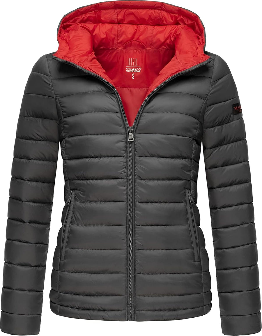 MARIKOO Damen Übergangsjacke leichte Steppjacke kurz mit Abnehmbarer Kapuze Kagomee XS-XXL S Dark Re