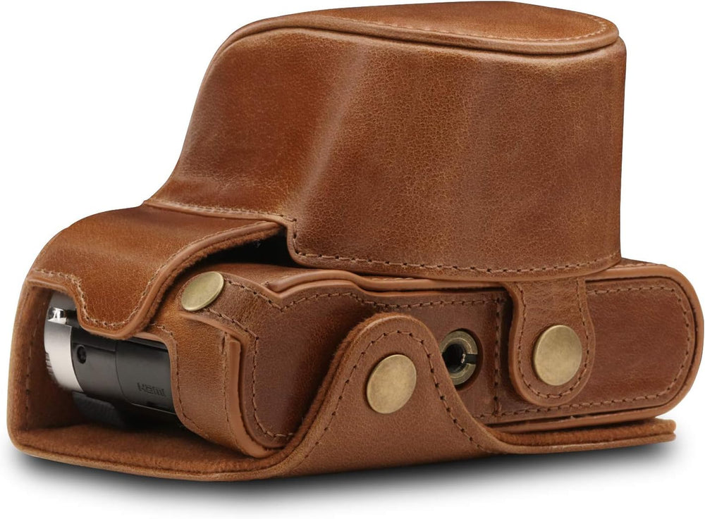 MegaGear MG1566 Panasonic Lumix DC-LX100 II Ever Ready Echtleder Kamera-Case mit Trageriemen - Braun