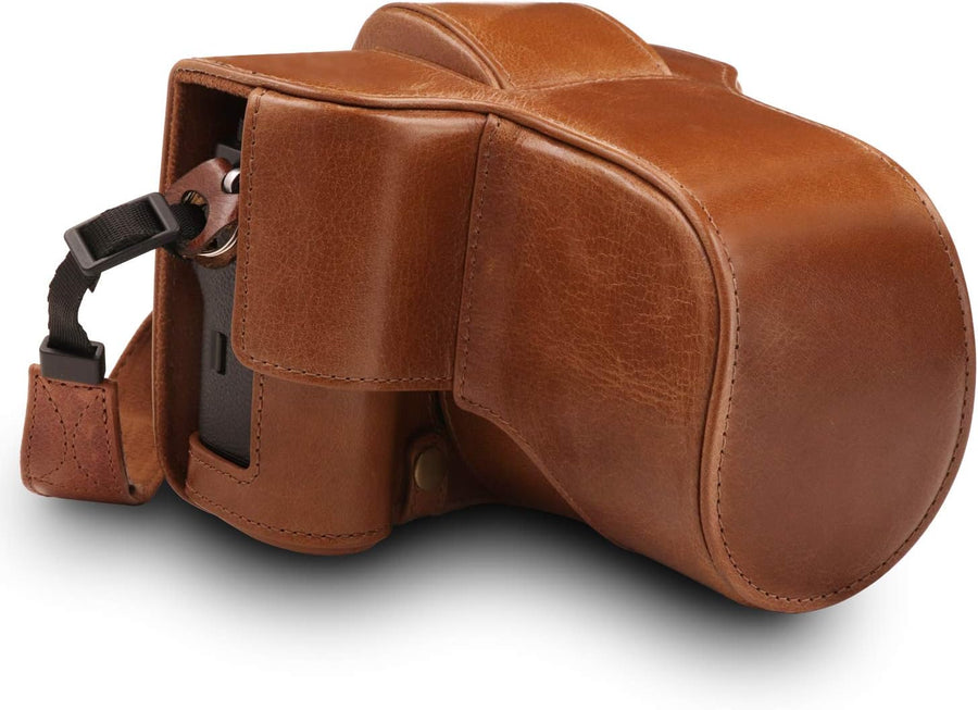 MegaGear MG1485 Ever Ready Leder Kameratasche mit Trageriemen kompatibel mit Sony Alpha A6500 (16-70