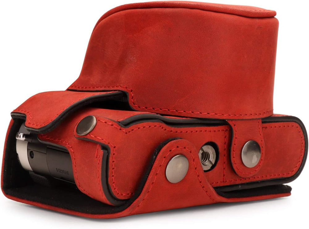 MegaGear MG1699 Ever Ready Kameratasche aus echtem Leder, kompatibel mit Leica D-Lux 7, Rot, Rot
