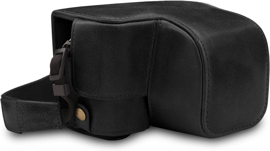 MegaGear MG1603 Leica D-Lux 7 Ever Ready Echtleder Kamera-Halbtasche mit Trageriemen - Schwarz, Schw