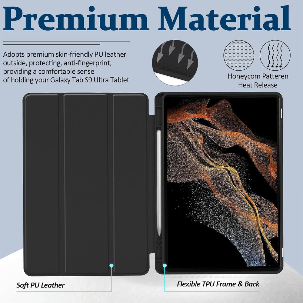 Miimall Lederhülle Kompatibel mit Samsung Galaxy Tab S9 Ultra Hülle, Premium PU+TPU Tab S9 Ultra Hül