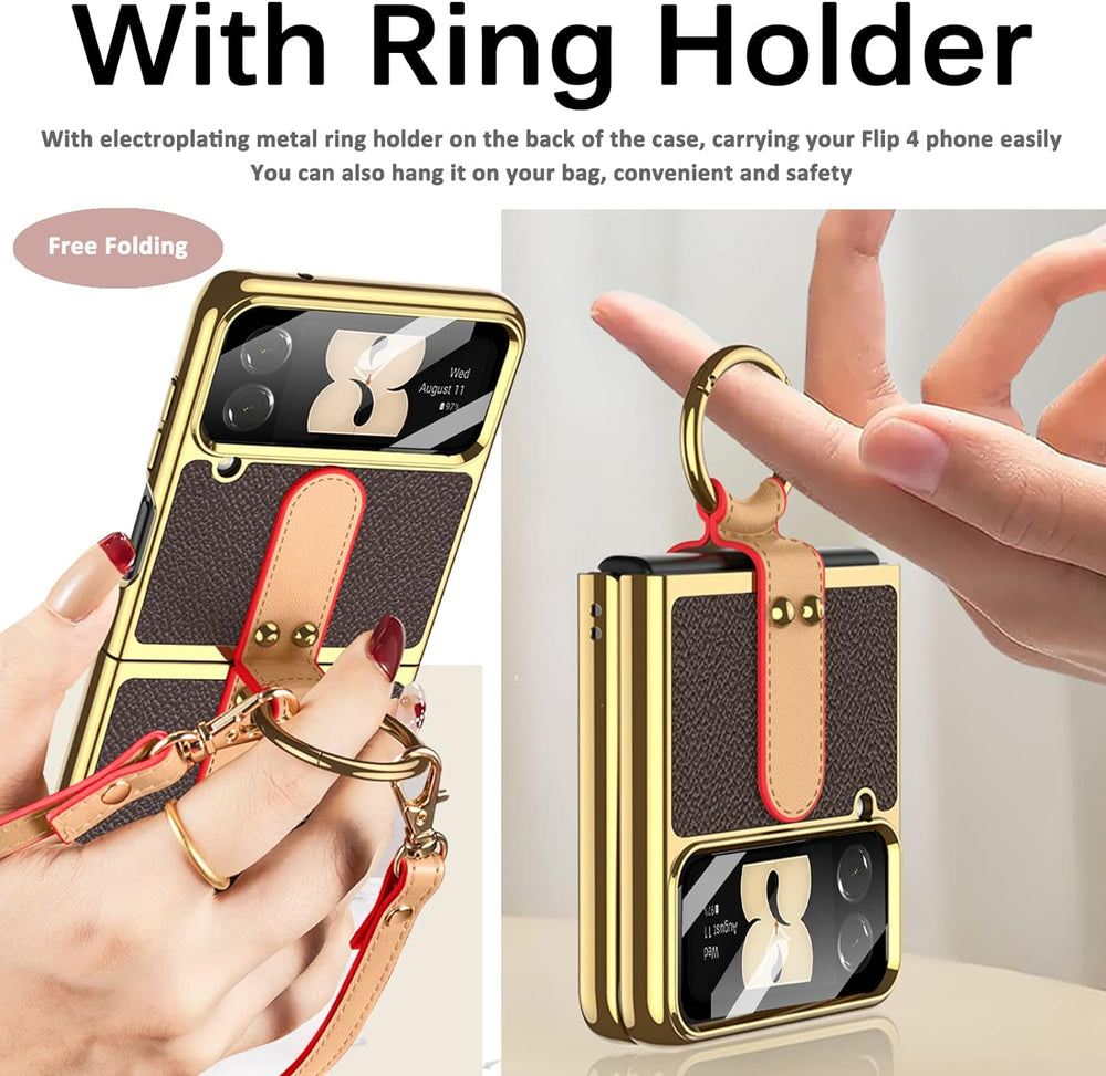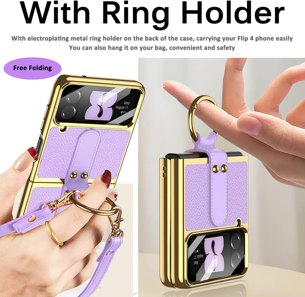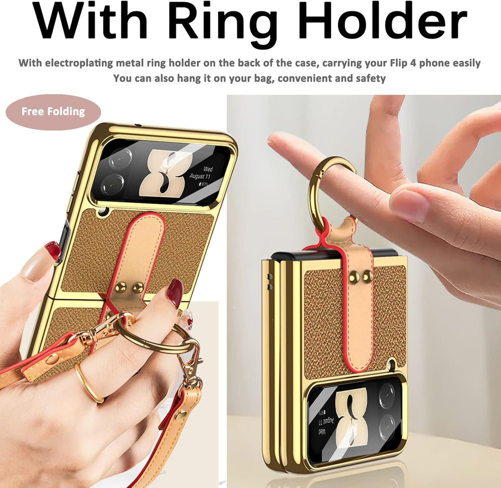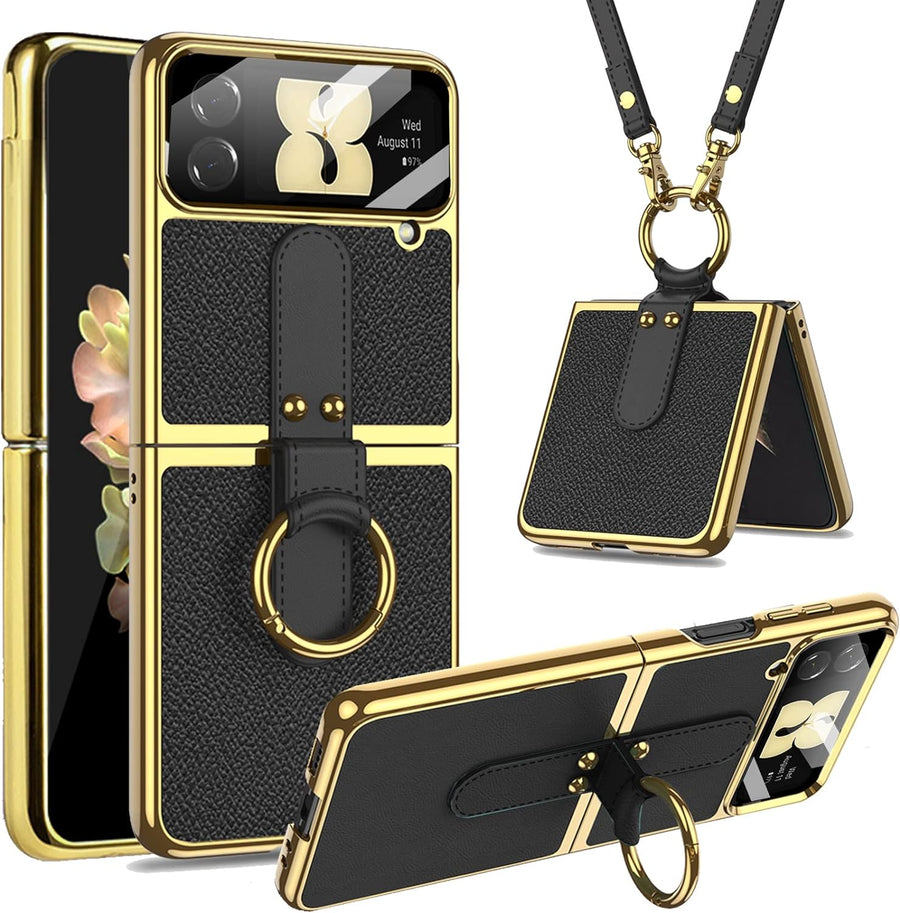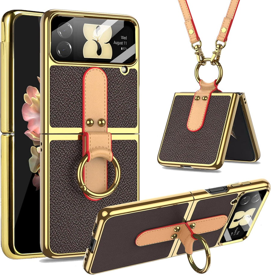 Miimall Lederhülle Kompatibel mit Samsung Galaxy Z Flip 4 Hülle mit Kameraschutz, Z Flip 4 Handyhüll
