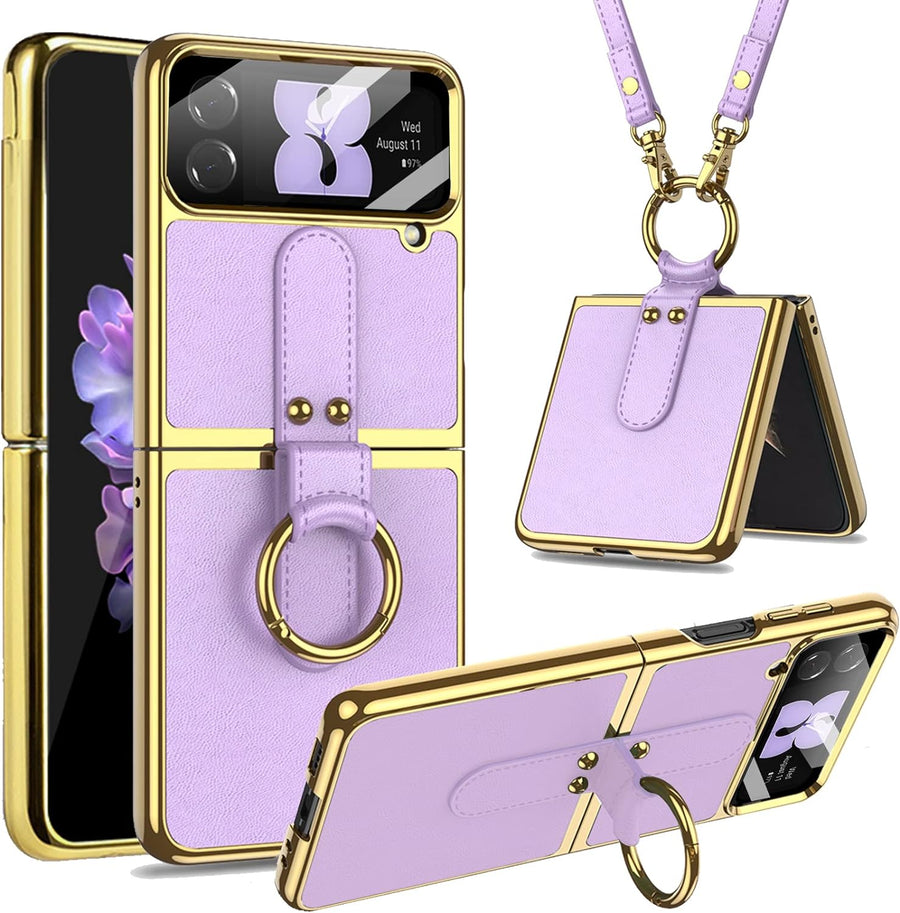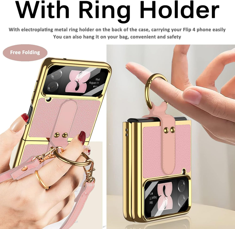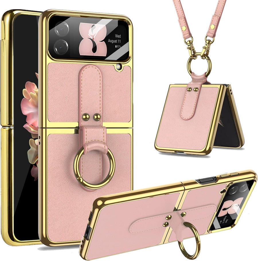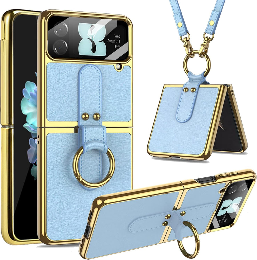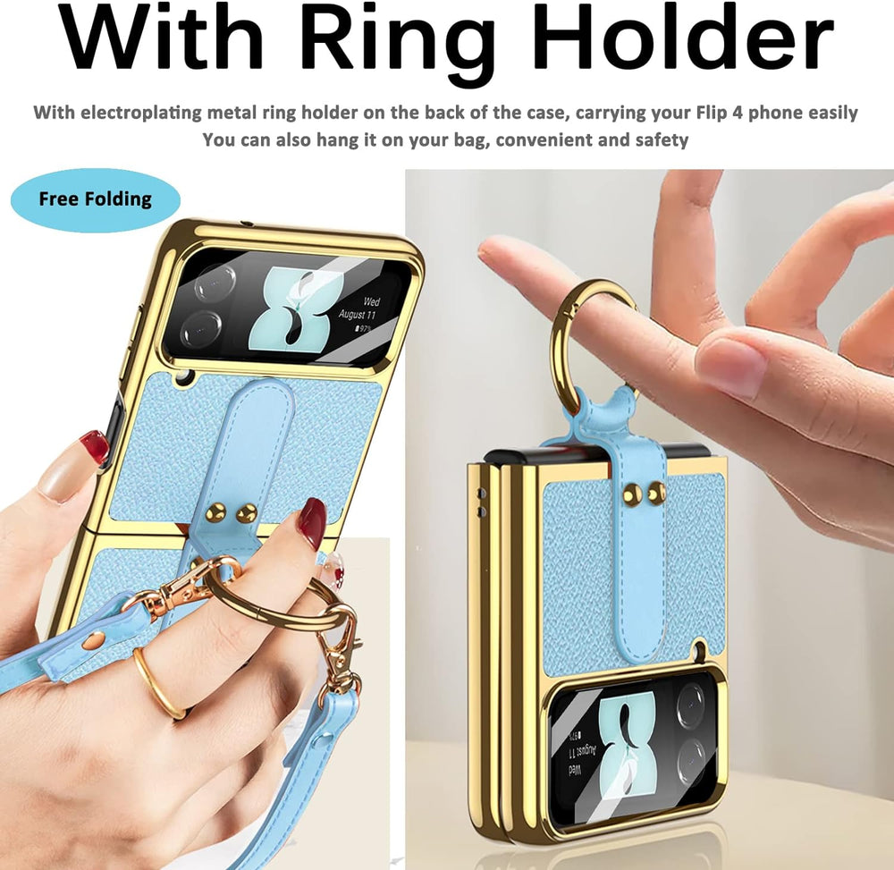 Miimall Lederhülle Kompatibel mit Samsung Galaxy Z Flip 4 Hülle mit Kameraschutz, Z Flip 4 Handyhüll
