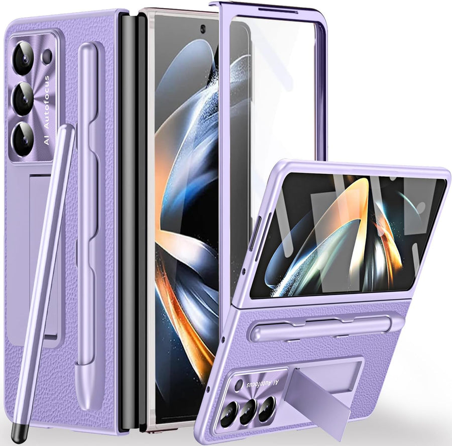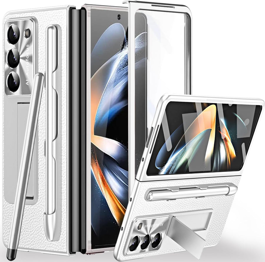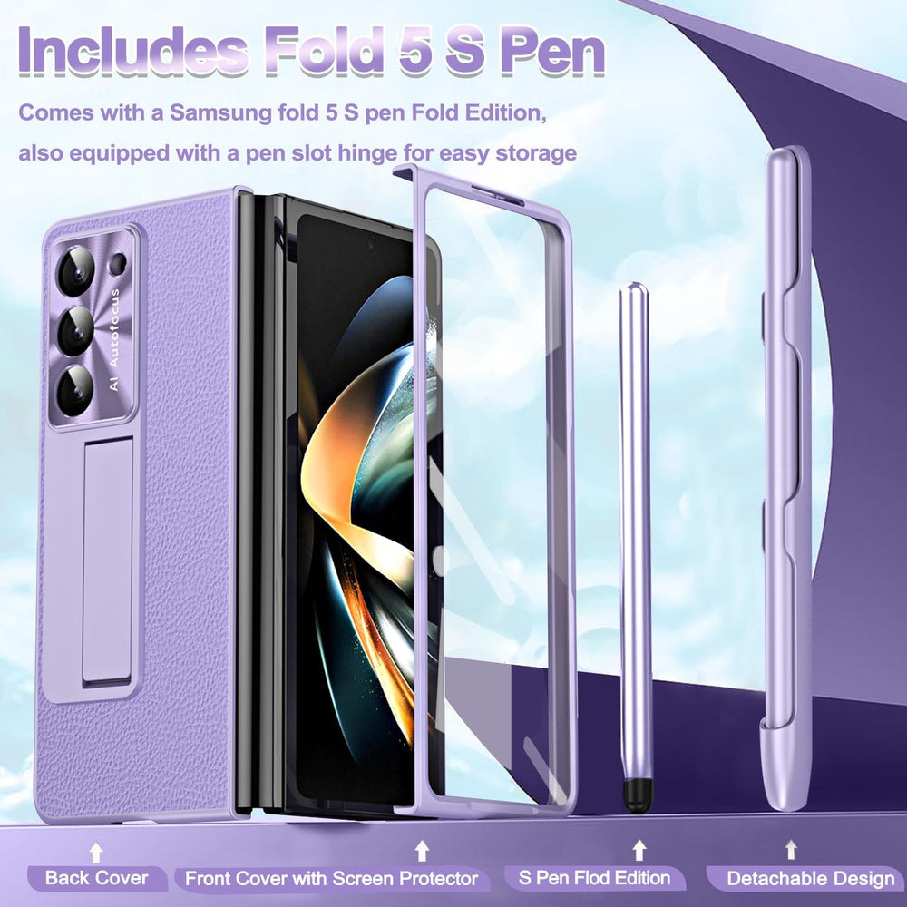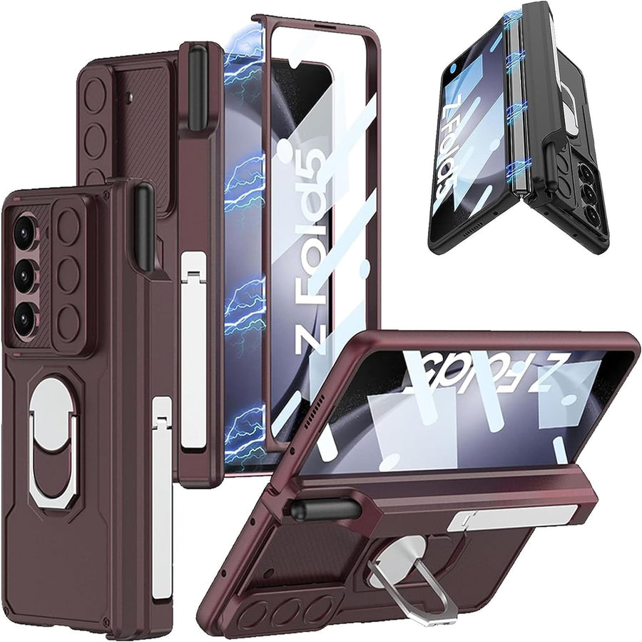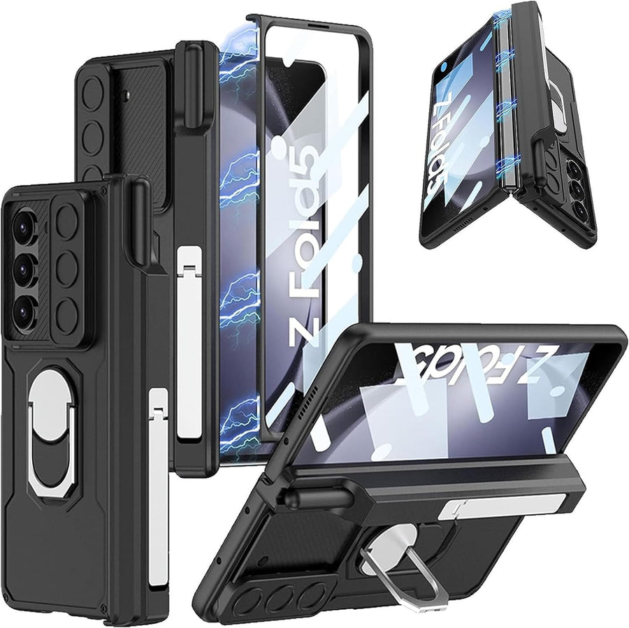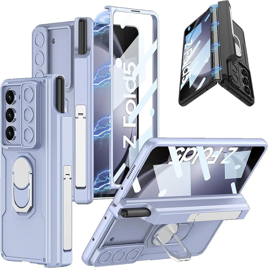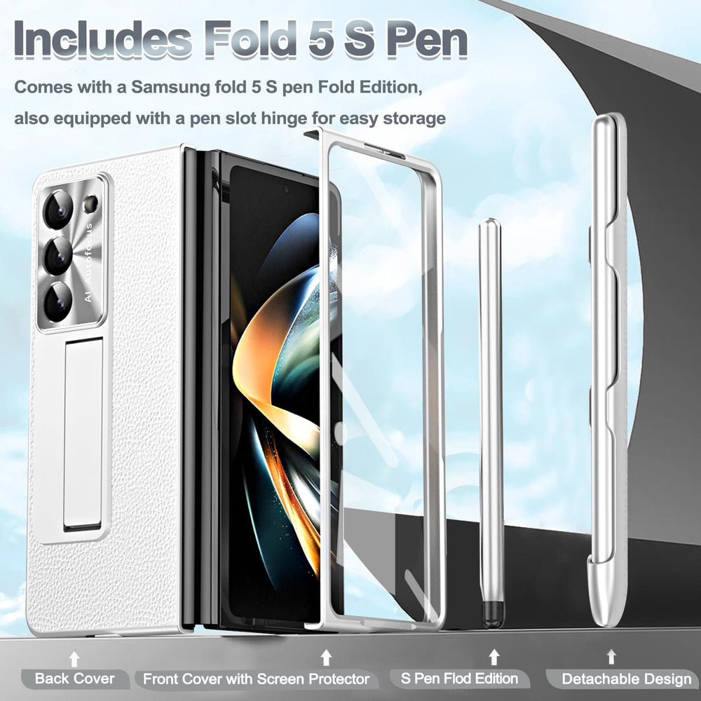 Miimall Kompatibel mit Samsung Z Fold 5 Hülle, Fold 5 Hülle mit Ständer+Stifthalter [HD Displayschut