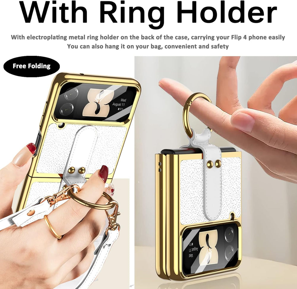 Miimall Schutzhülle Kompatibel mit Samsung Galaxy Z Flip 4 Hülle mit Ständer und Magnetscharnier, An
