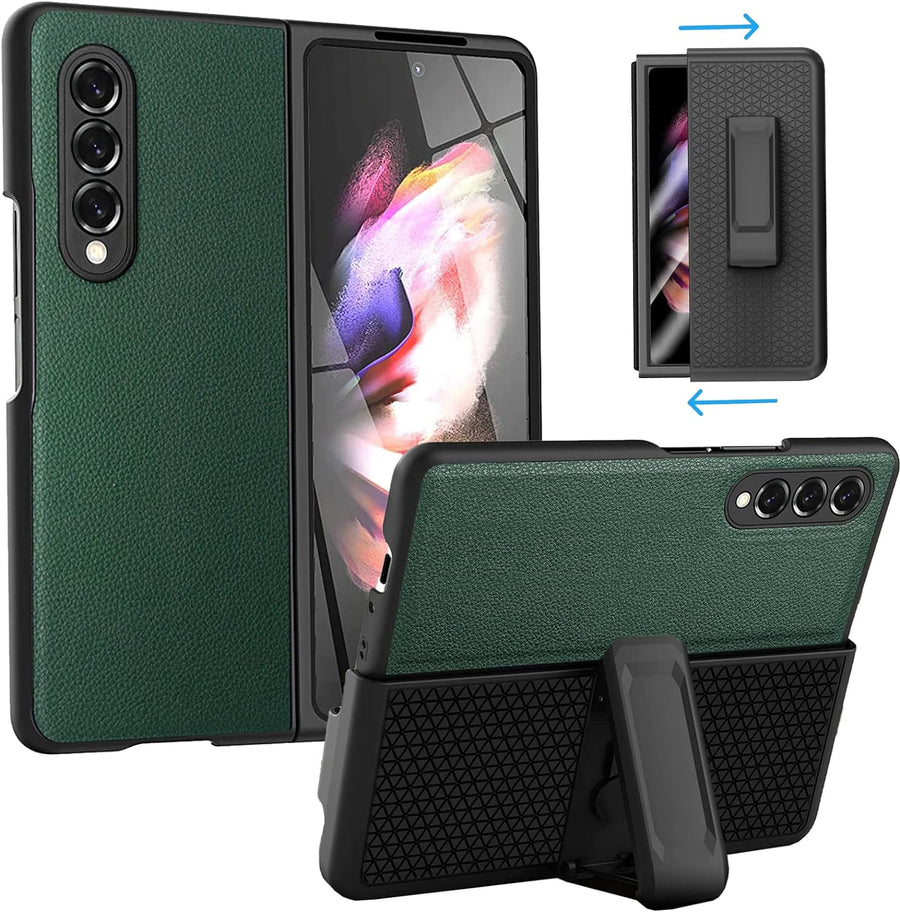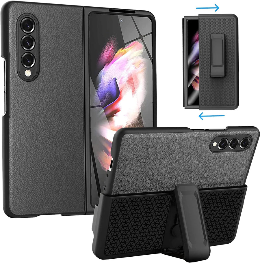 Miimall Schutzhülle für Galaxy Z Fold 3 mit Gürtelclip Hülle, Hochwertiges PU Leder Angenehme Haptik