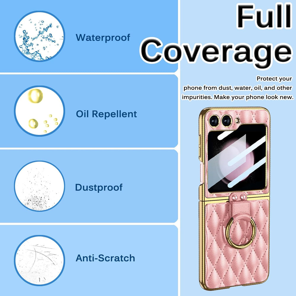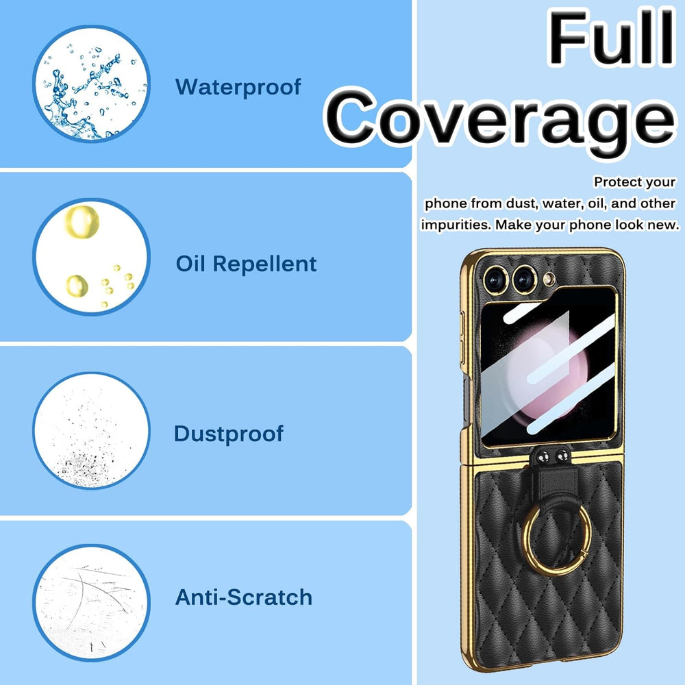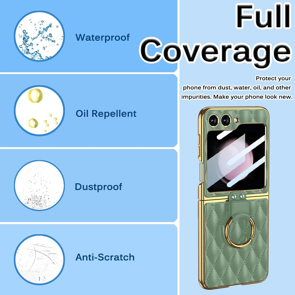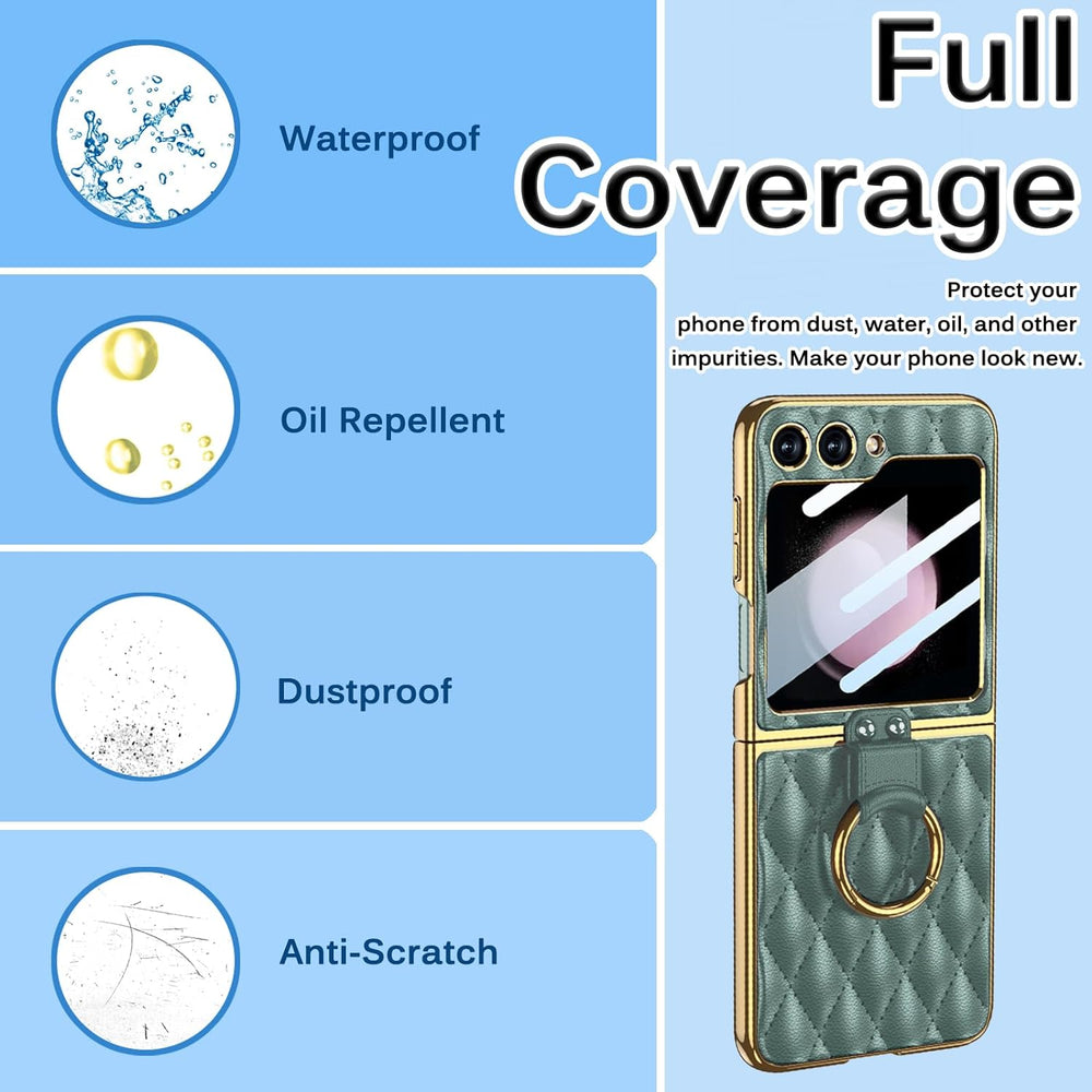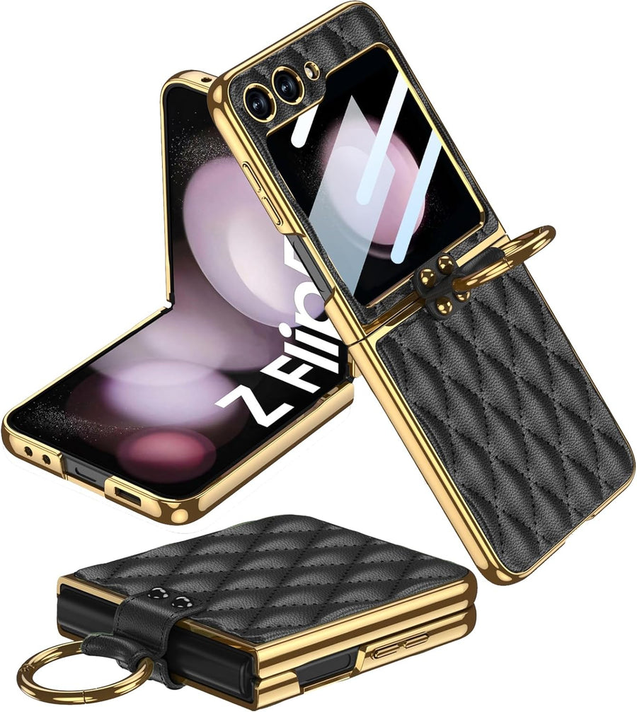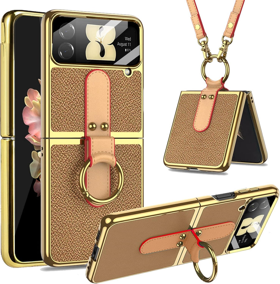Miimall Lederhülle Kompatibel mit Samsung Galaxy Z Flip 5 Hülle mit Kameraschutz, Z Flip 5 Case mit