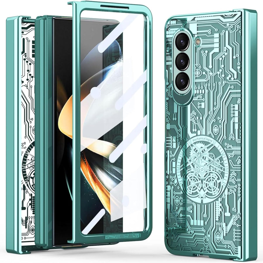 Miimall Kompatibel mit Samsung Galaxy Z fold 5 Hülle mit Displayschutz+Scharnierschutz, [Galvanisier