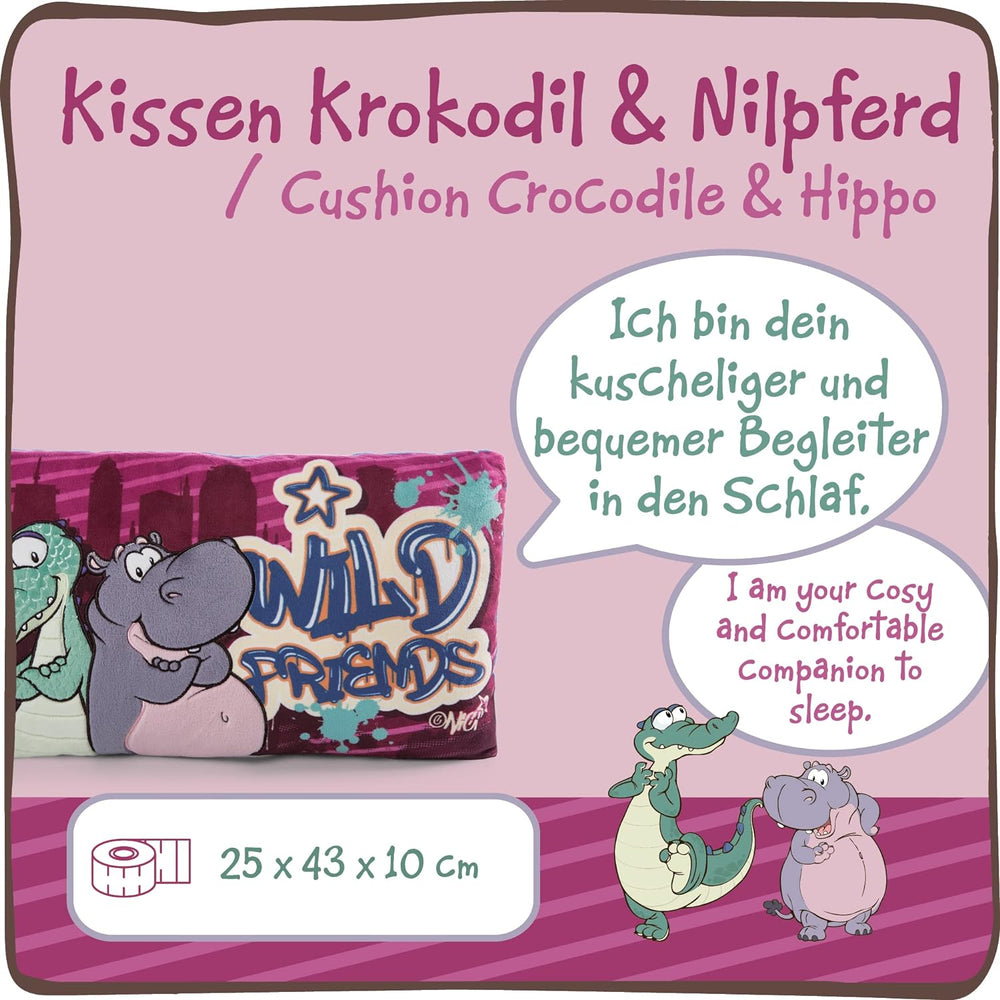 NICI Kuschelkissen Krokodil und Nilpferd – Nachhaltiges Kuscheltierkissen für Mädchen, Jungen & Baby