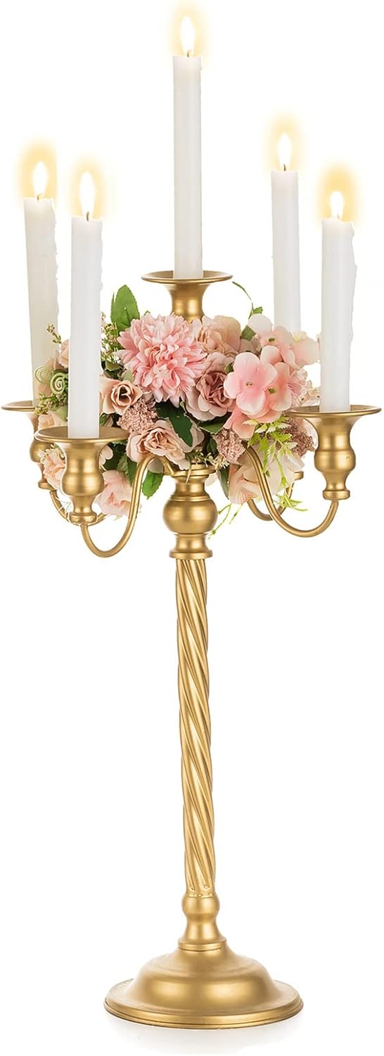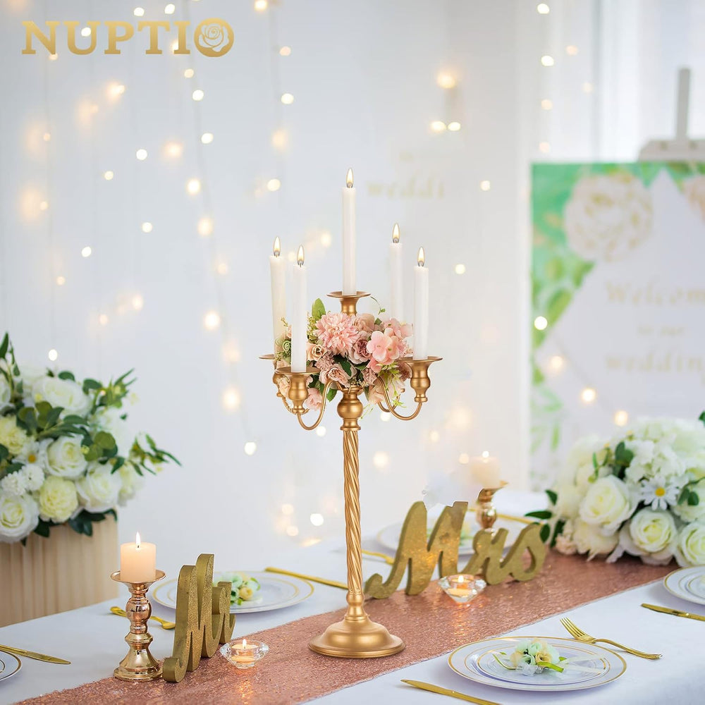 Nuptio Kandelaber Kerzenständer Gold: 53cm Vintage Metall Kandelaber für Tisch Tafelaufsatz Candlear