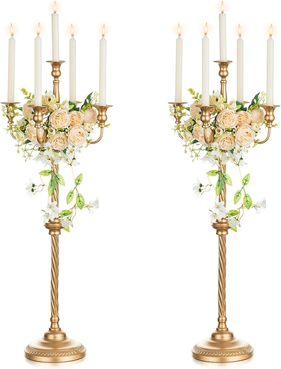 Nuptio Kandelaber Kerzenständer 5 Armig: 88cm Satz von 2 Kerzen Ständer Halter hoch, Gold Metall Kan