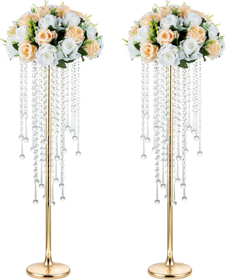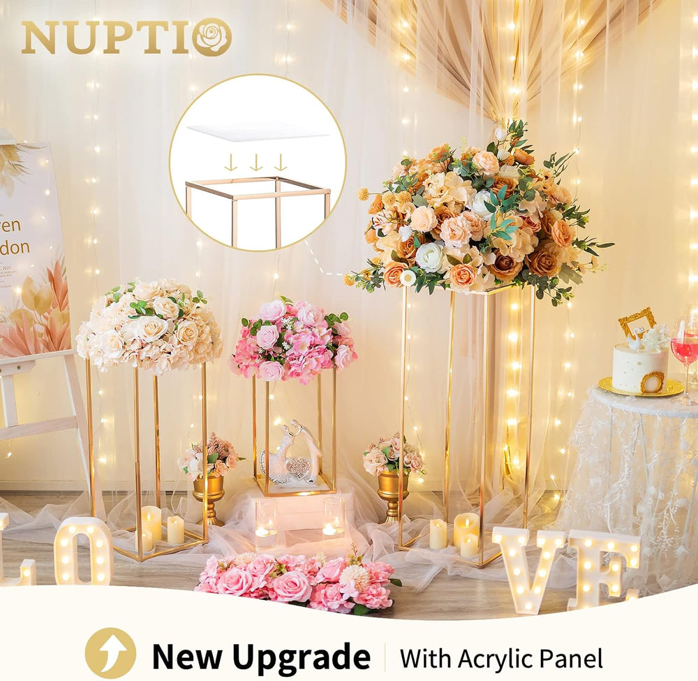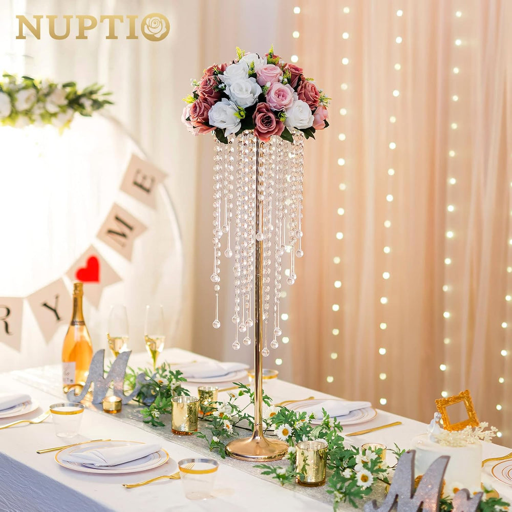 NUPTIO Gold Vase Hochzeit Tafelaufsätze: 2 Stück 75cm Hoch Kristallblumenständer für Tische Elegante