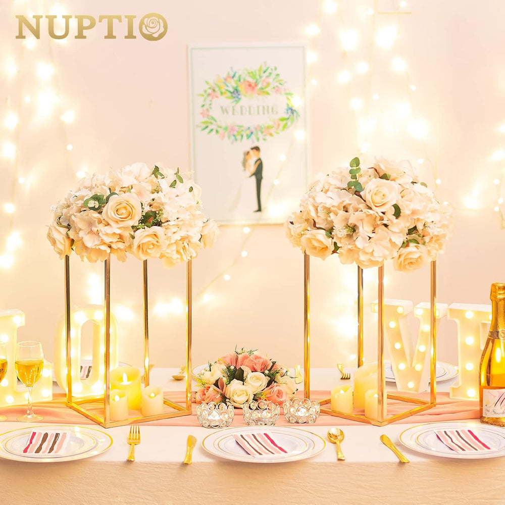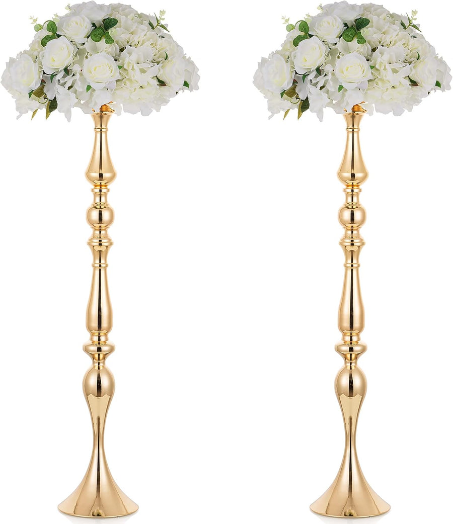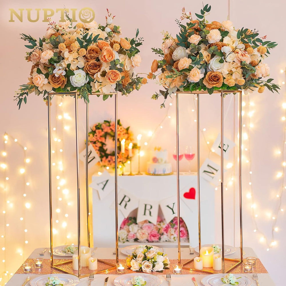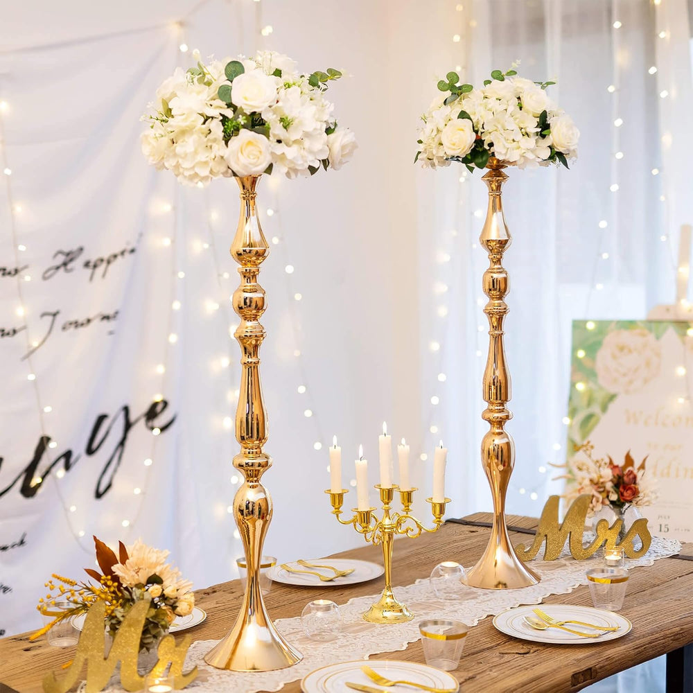 Nuptio Goldene Tafelaufsätze für Hochzeitstafeln 2 Stück 90cm Hohe Tafelaufsätze Vase Metall Blumens