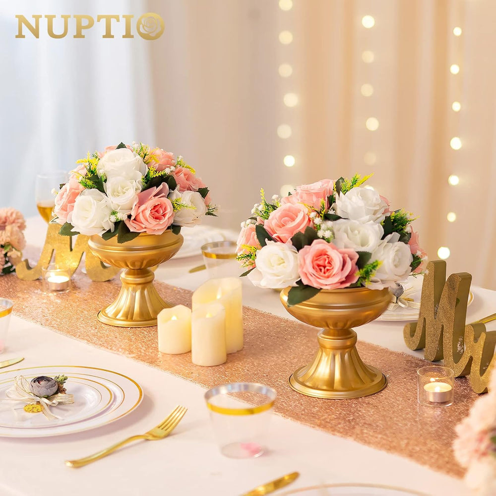 Nuptio Gold Vasen für Mittelstücke Hochzeit - 10 Stück 16.4cm Höhe Metall Urne Vase Elegante Bulk Ho