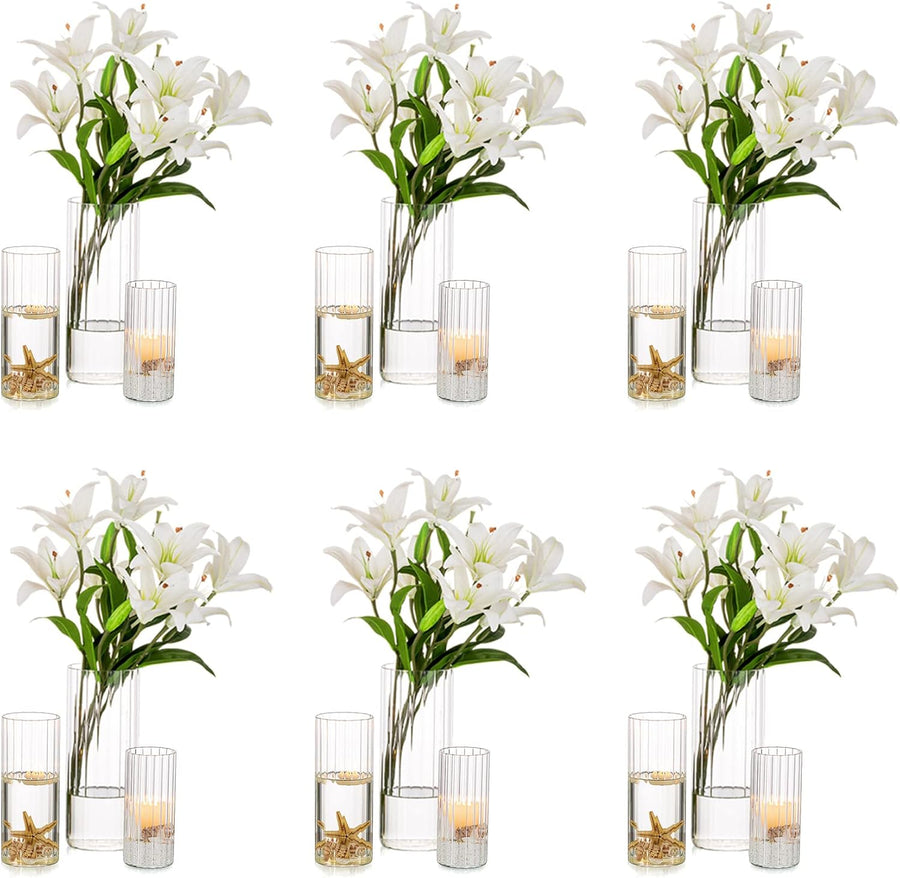 Nuptio Glaszylinder Blumenvase 18 Stück Klare Hurricane Vasen für Tafelaufsätze, Hohe Kerzenhalter f