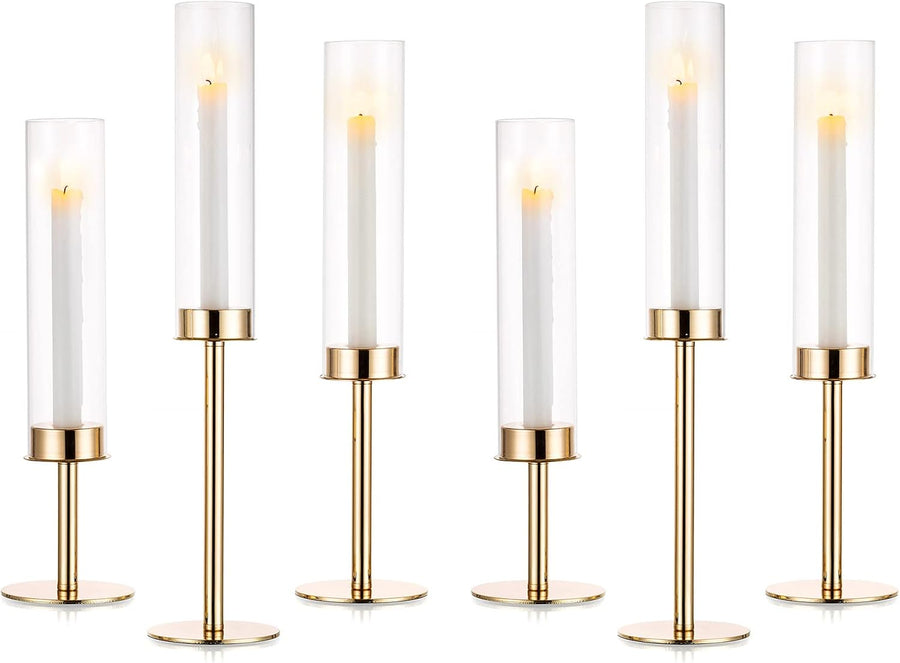 Nuptio Glaszylinder für Kerzen Kerzenhalter Glas: 6 Stücke Metall Kerzenständer Stabkerzen Gold, Gro