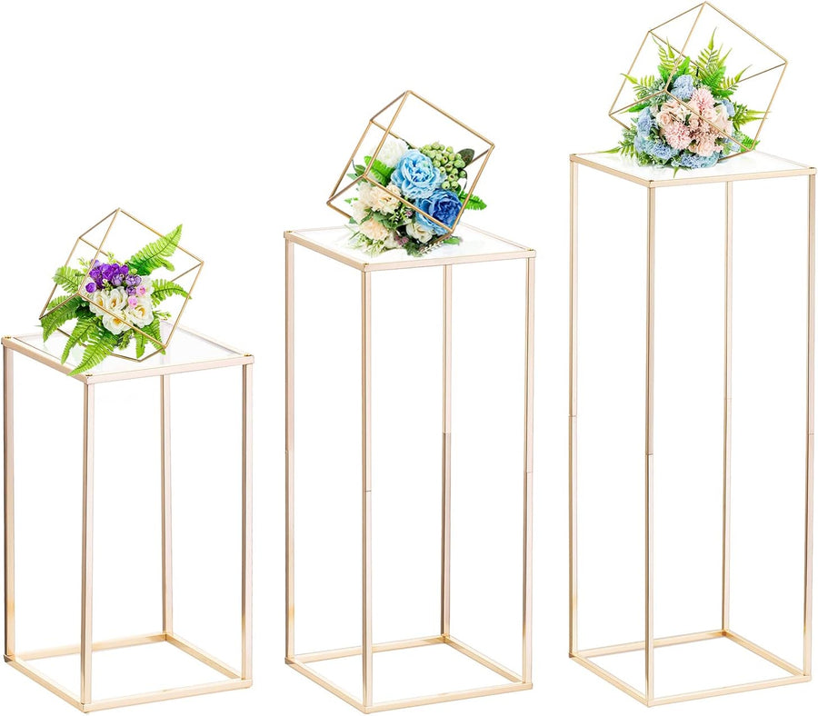 Nuptio Gold Hochzeit Tafelaufsätze für Tische mit Acrylplatte - 3 Stück Hohe Goldene Vase für Tafela