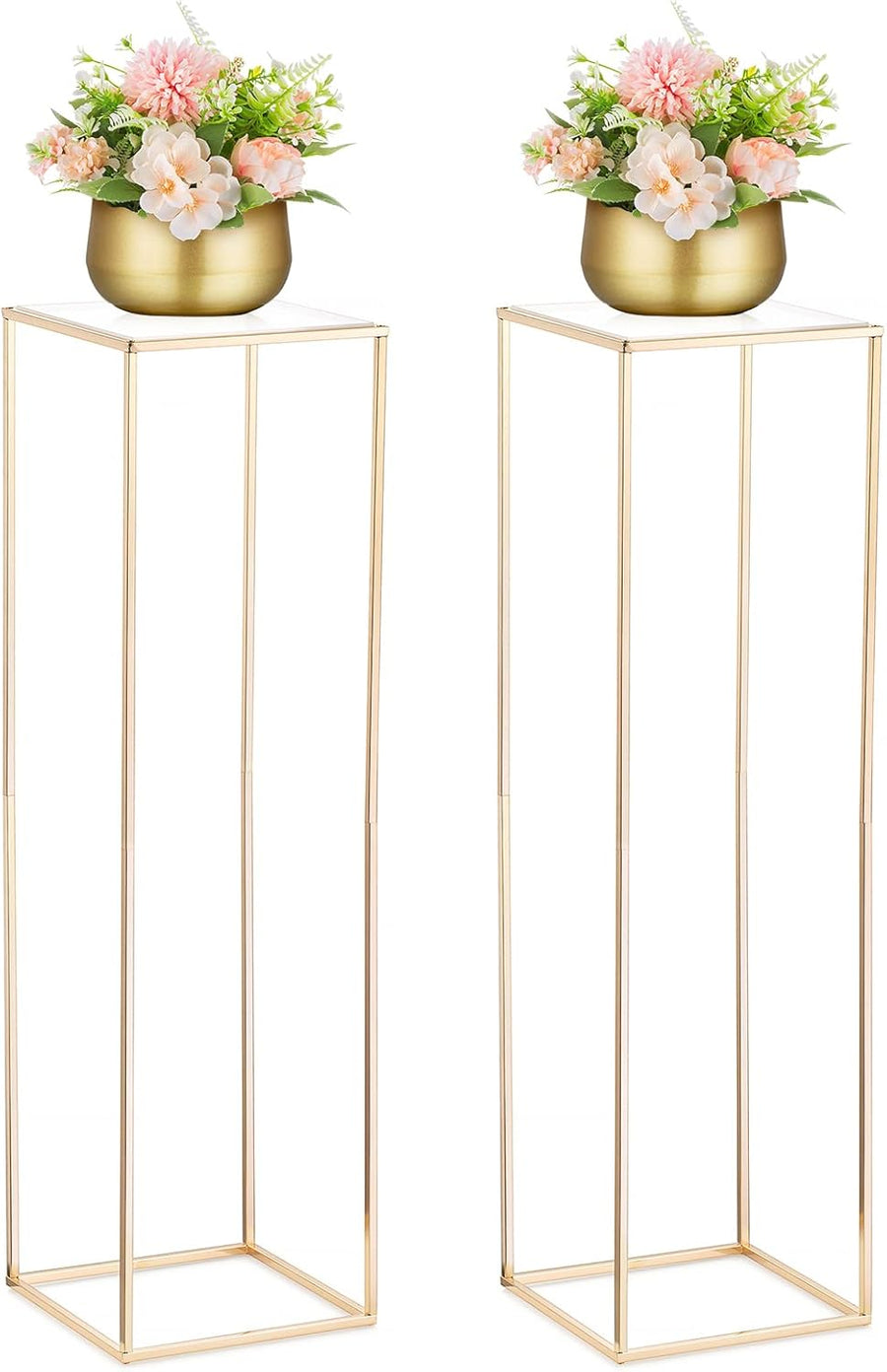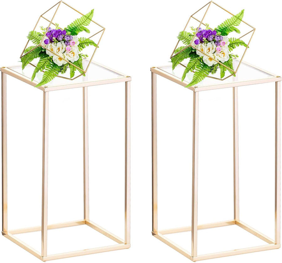 Nuptio Goldene Vasen für Hochzeit Tafelaufsätze mit Acrylplatte 2 Stück 40cm Hohe Blumenständer Meta