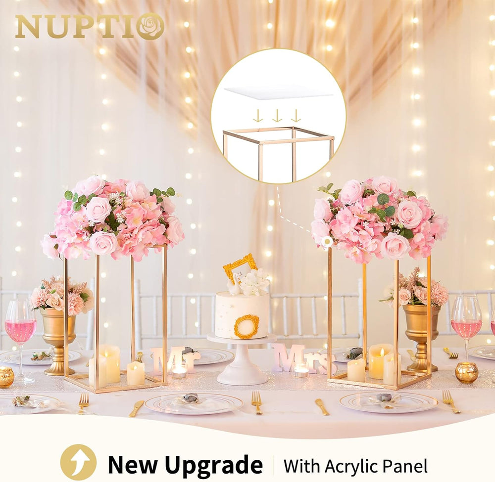 Nuptio Hochzeit Tafelaufsätze für Tische mit Acrylplatte - 2 Stück 80cm Hohe Goldvase für Tafelaufsä