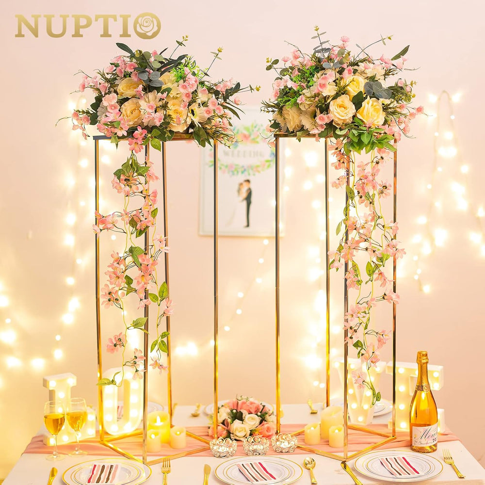 Nuptio Gold Vase für Hochzeit Tafelaufsätze - 2 Stück 100cm Hoch Goldene Tafelaufsätze für Tische Ge