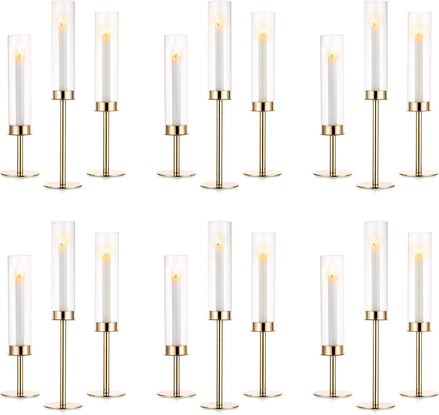 Nuptio Glaszylinder Kerzenständer Metall Gold - 18 Stücke Kegel Kerzenhalter Stabkerze Pack ür Kerze