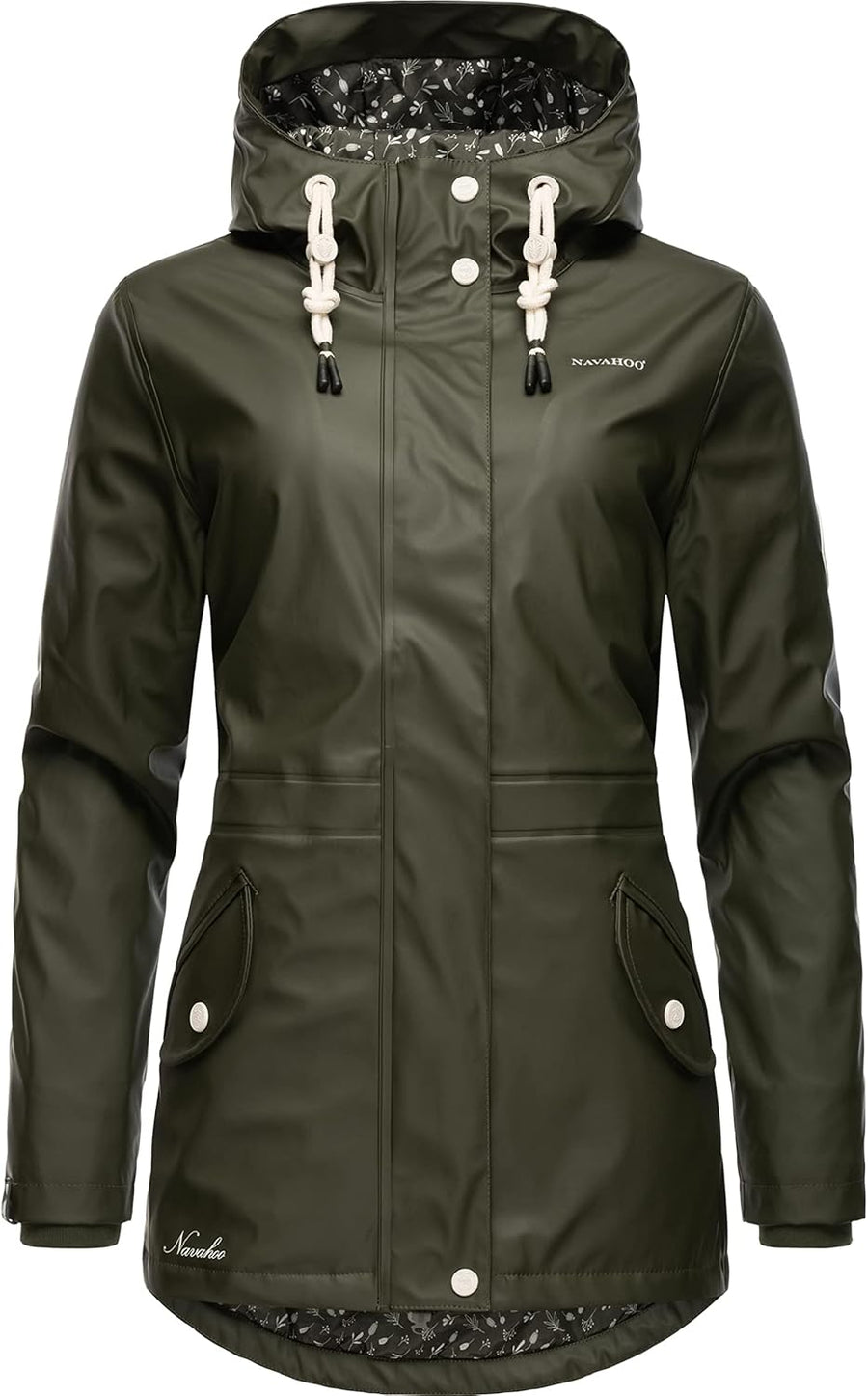 Navahoo Damen Übergangsjacke Regenmantel wasserdicht lang warm gefüttert mit Kapuze Rainy Flower XS-