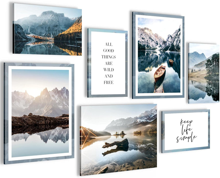 Novart Wandbilder Berge und See - KOMPLETT AUFHÄNGFERTIG - Natur Wohnzimmer Schlafzimmer- 7 Moderne