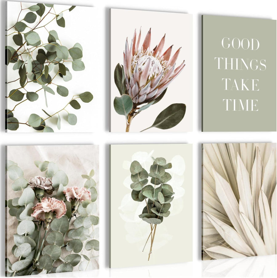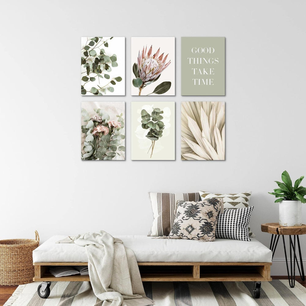 Novart Wandbilder Boho Natur - KOMPLETT AUFHÄNGFERTIG - Beige Grün Wohnzimmer Schlafzimmer- 7 Modern