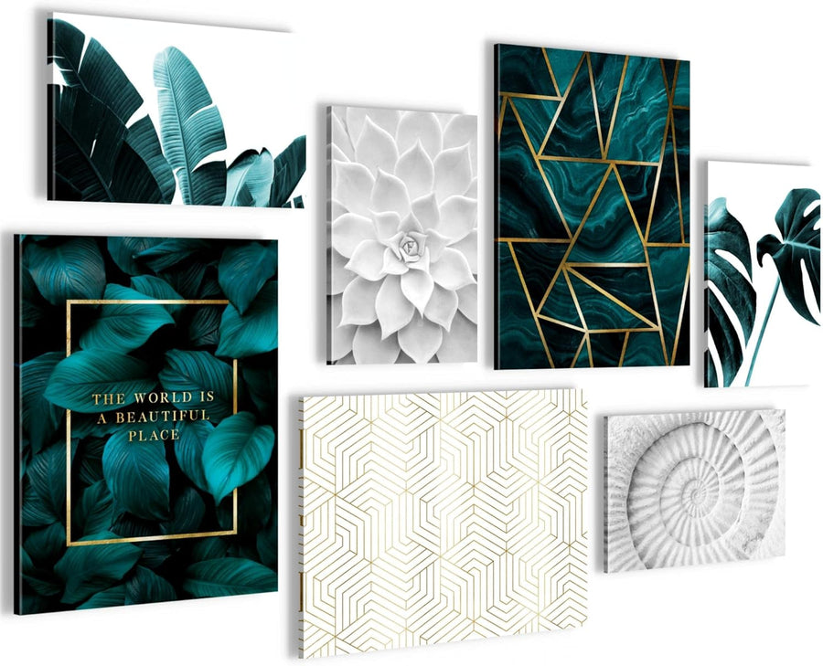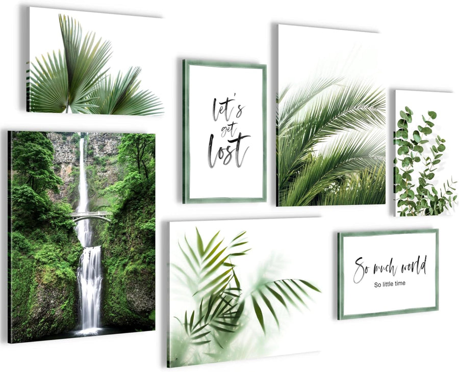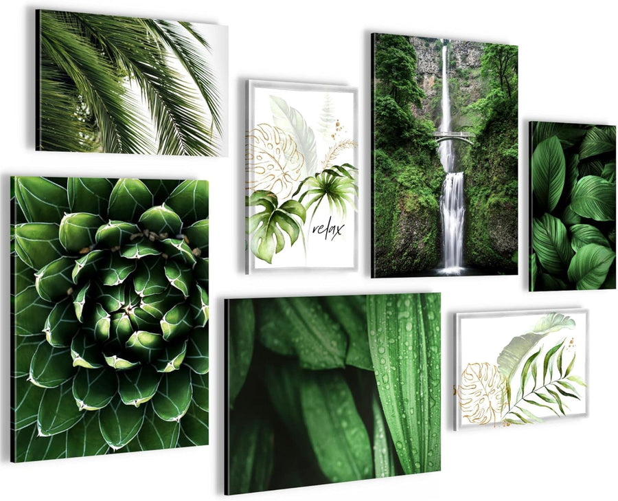 Novart Wandbilder Grüne Blätter - KOMPLETT AUFHÄNGFERTIG - Zitate Home Wohnzimmer Schlafzimmer- 7 Mo