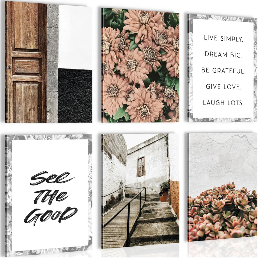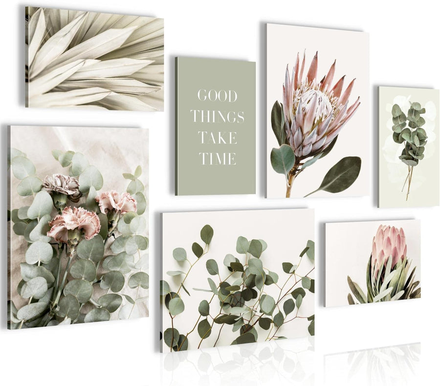Novart Wandbilder Boho Blumen - KOMPLETT AUFHÄNGFERTIG - Beige Wohnzimmer Schlafzimmer- 7 Moderne Mo