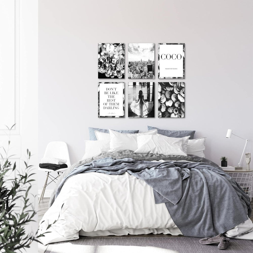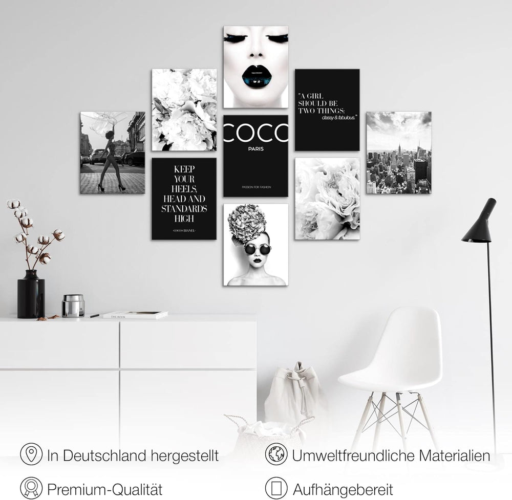Novart Wandbilder Fashion - KOMPLETT AUFHÄNGFERTIG - Schwarz Weiss Wohnzimmer Mädchen Teenager- 9 Mo