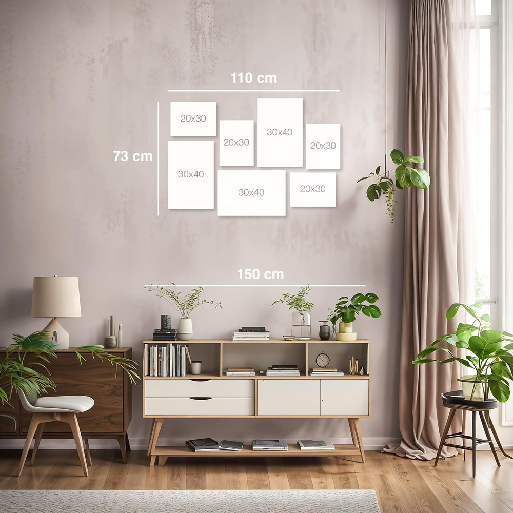 Novart Wandbilder Boho - KOMPLETT AUFHÄNGFERTIG - Beige Wohnzimmer Schlafzimmer- 7 Moderne Mood-Bild