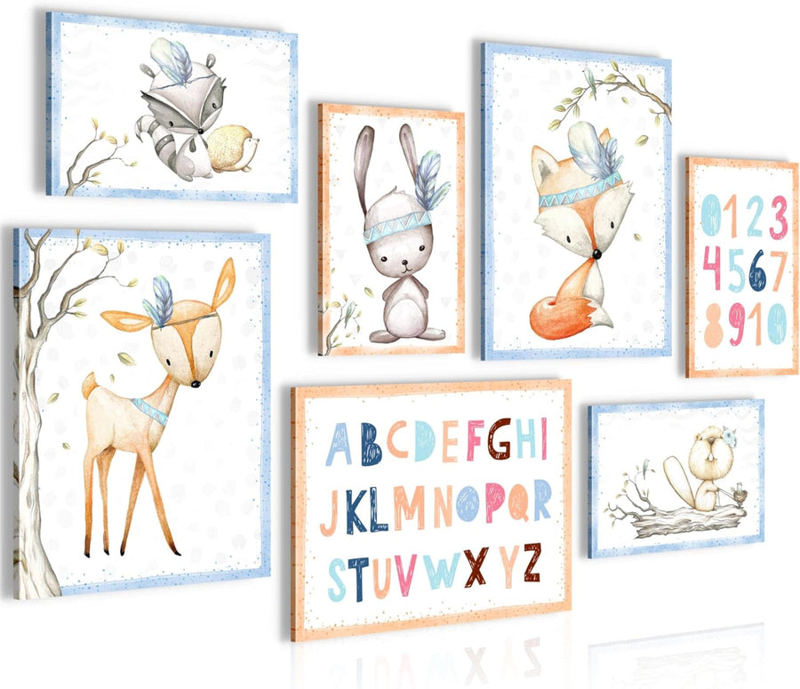 Novart Wandbilder Indianer Tiere - KOMPLETT AUFHÄNGFERTIG - Blau Kinderzimmer Mädchen Junge- 7 Moder
