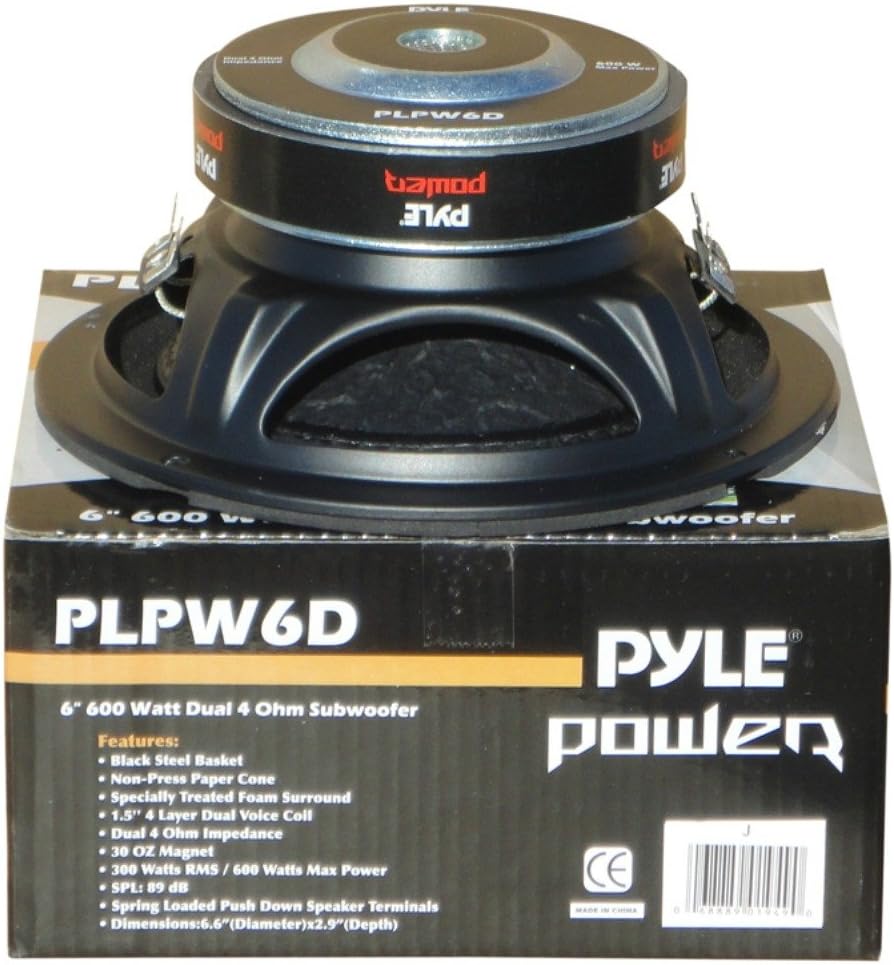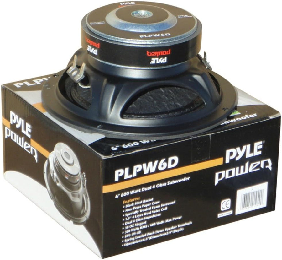 Pyle PLPW6D Subwoofer, 300 Watt RMS, 600 Watt max., Durchmesser: 16,50 cm (6,5 Zoll), DVC-Woofer mit