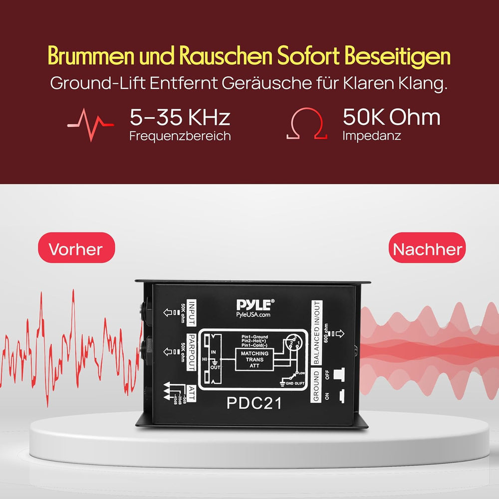 Pyle Premium DI Direct Injection Box, Passive DI Einheit, Brummen-Entferner mit Eingangs-Dämpfer zum