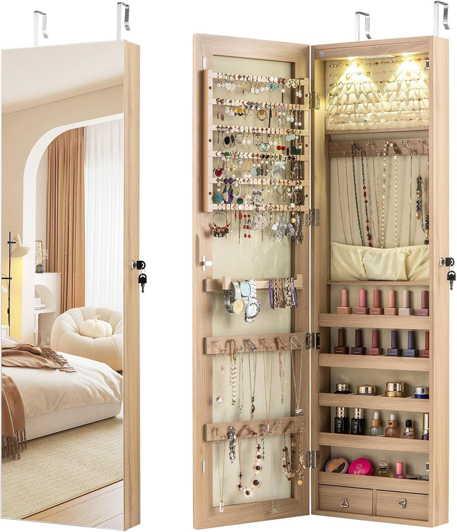 RELAX4LIFE Schmuckschrank, Schmuckregal mit LED-Beleuchtung & Spiegel & Schloss, Schmuckorganizer fü