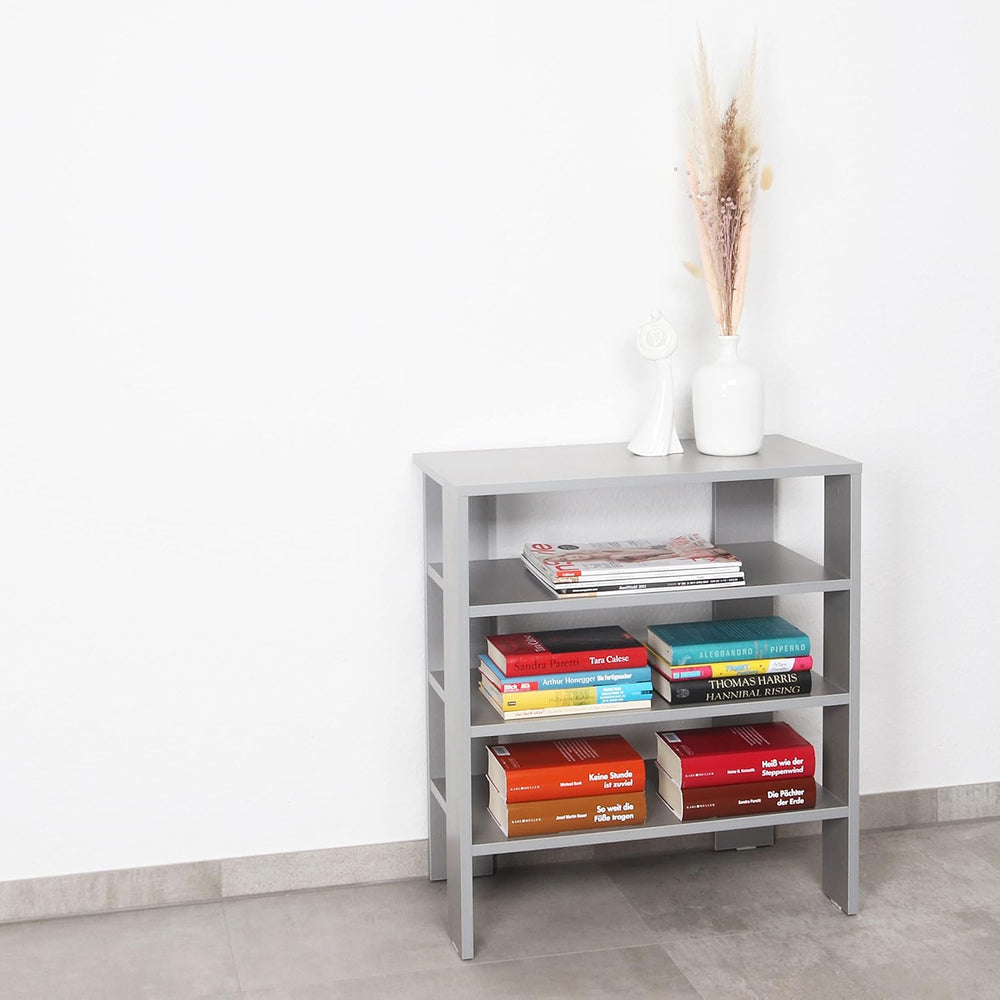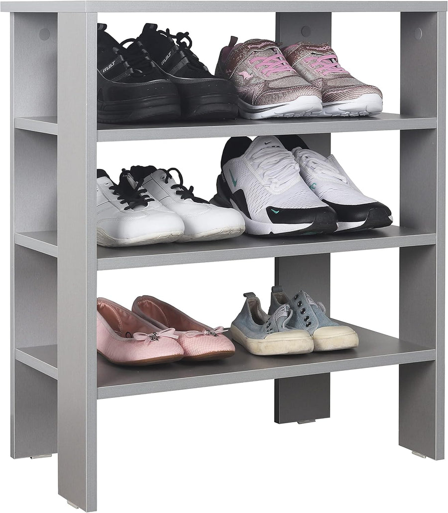 RICOO Schuhregal schmal und hoch 88x60x32cm Standregal Pressholz Grau WM040-PL, Schuhständer mit 4 E