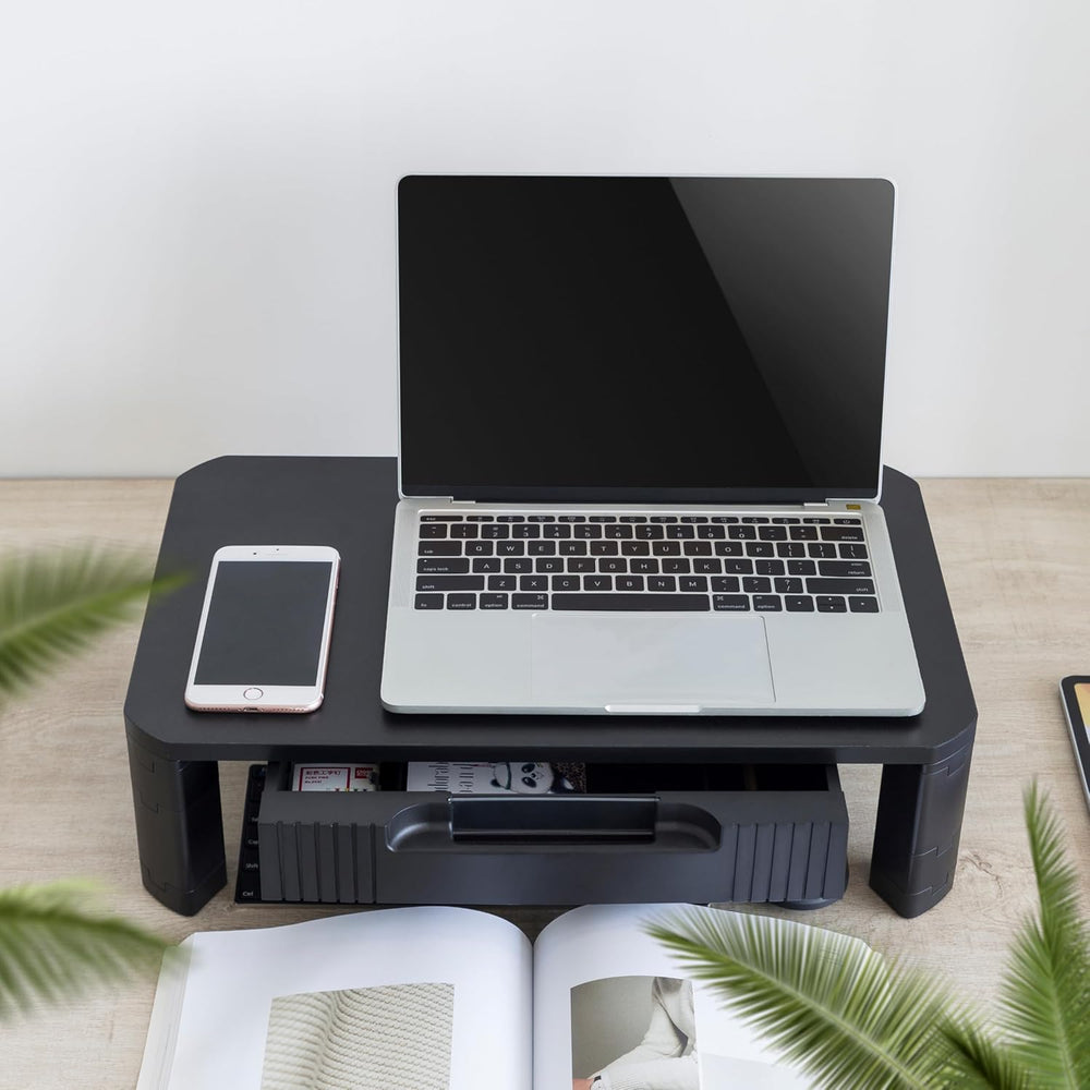 RICOO Schreibtischaufsatz Monitor Aufsatz Erhöhung mit Schublade für Schreibtisch Aufsatzregal Monit