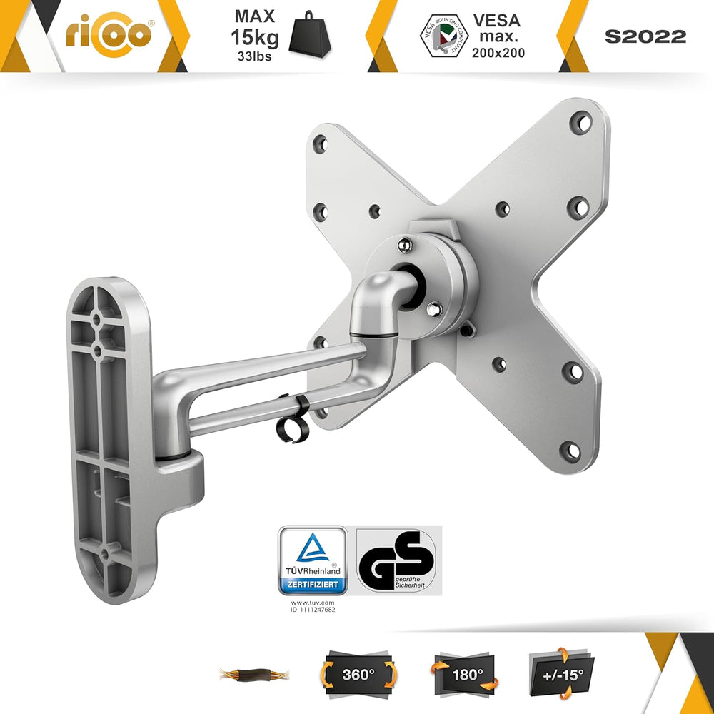 RICOO TÜV geprüfte TV Wandhalterung Fernseher Schwenkbar für 15-42 Zoll, Universal TV Halterung S202