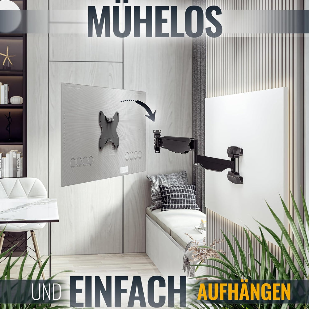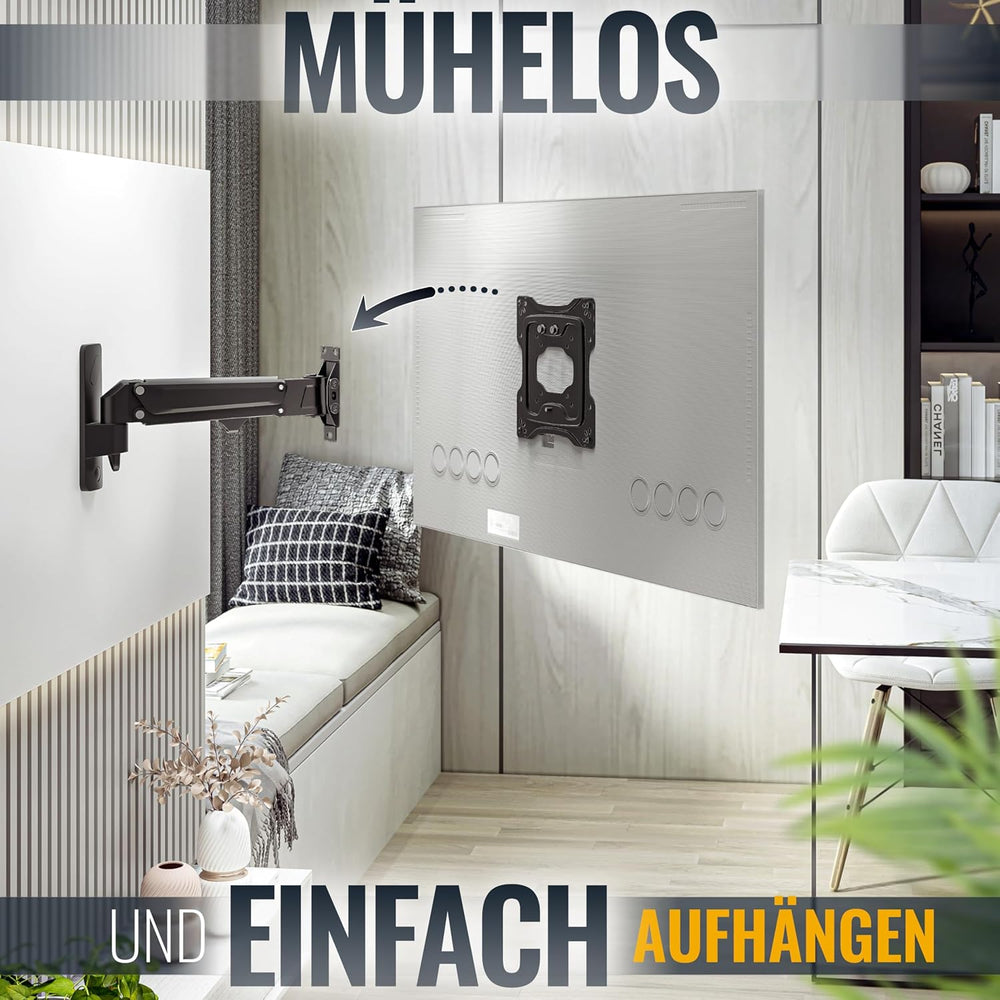 RICOO TV Monitor Wandhalterung Schwenkbar Gasdruckfeder für 23-43 Zoll, Universal TV Halterung S4322