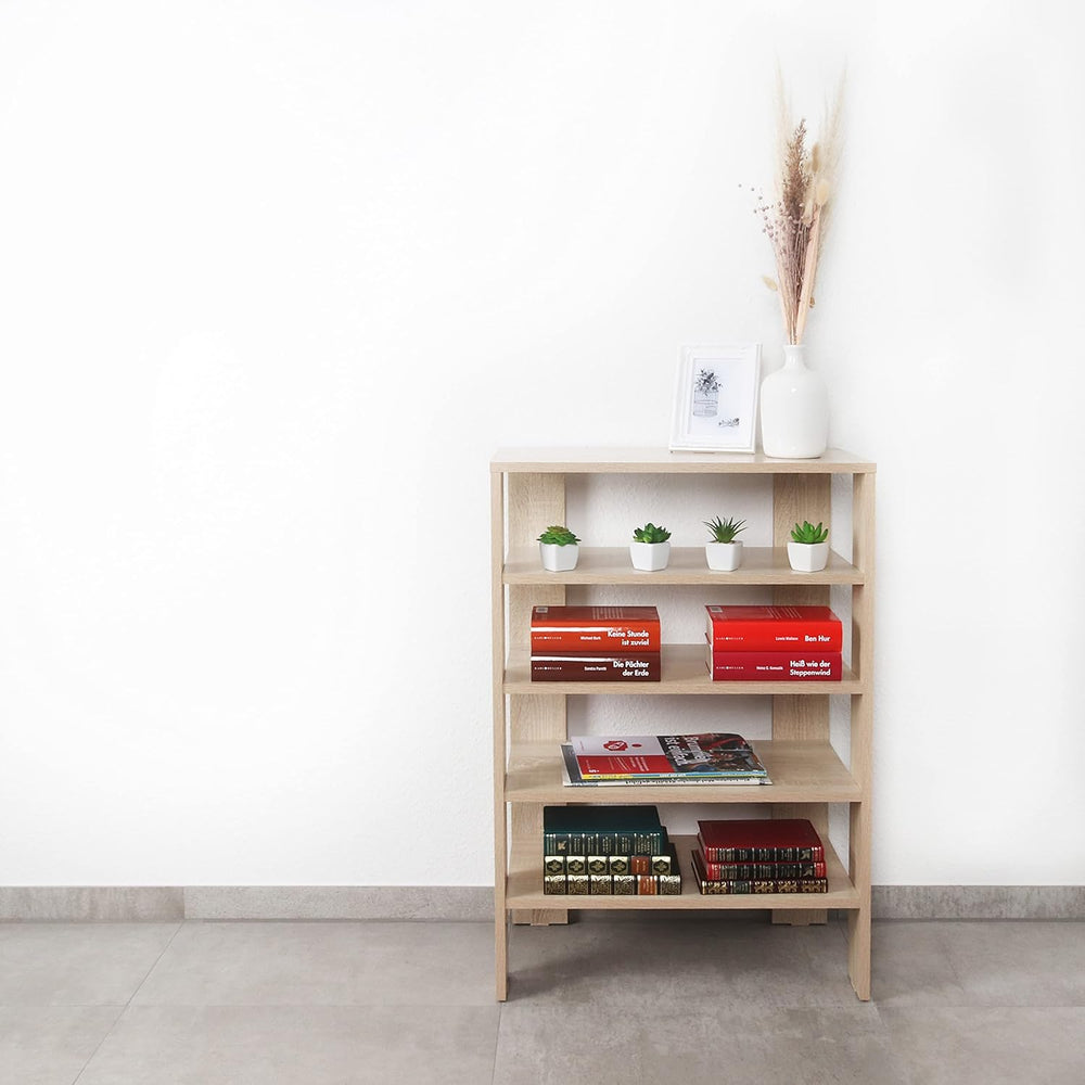 RICOO Schuhregal schmal und hoch 88x55x32cm Standregal Pressholz Eiche Sonoma Braun WM040-ES, Schuhs