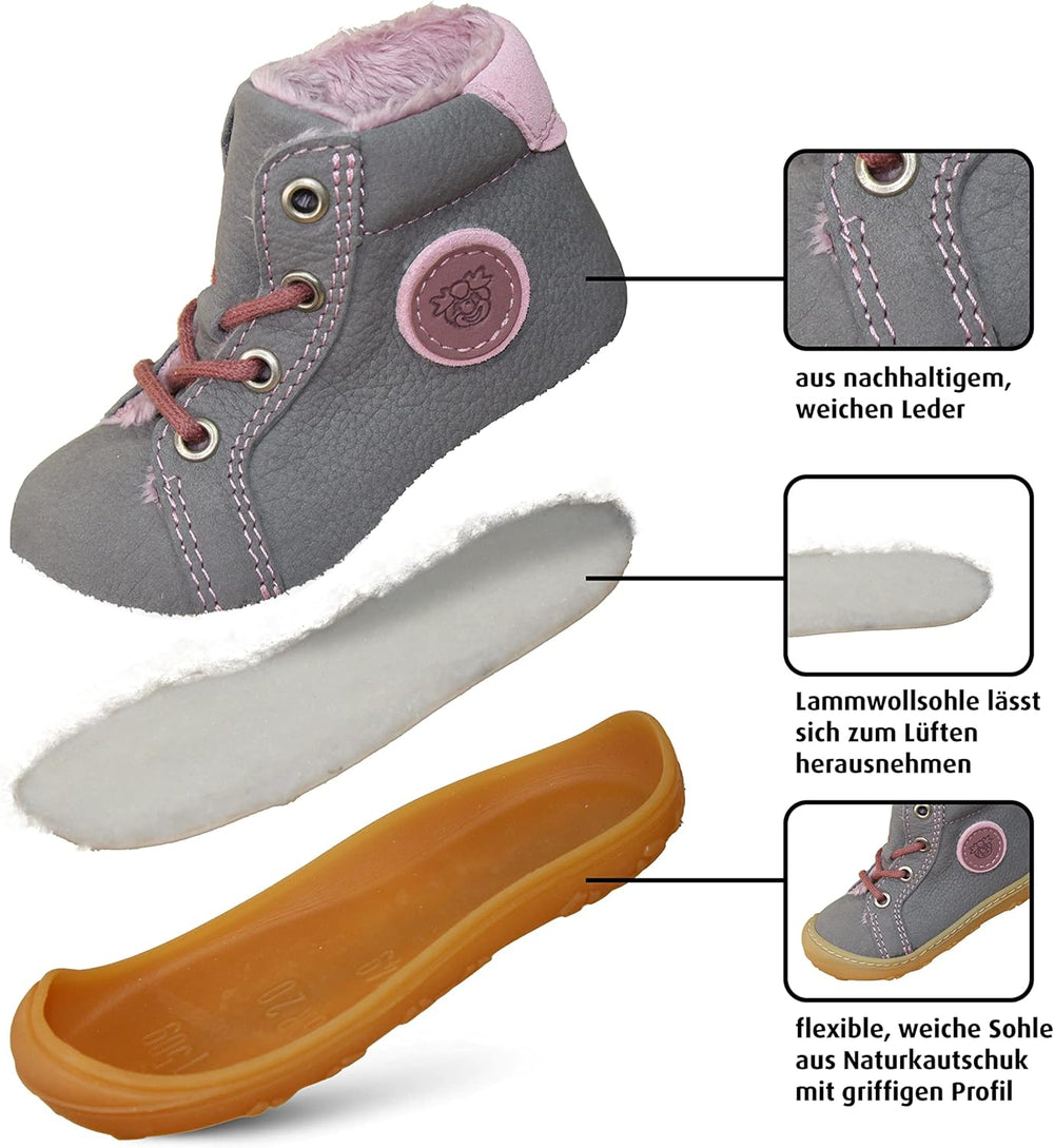 RICOSTA Mädchen und Jungen Lauflernschuhe Georg,Warmfutter,Leder,WMS:Mittel/Weit 23 EU Grau 450, 23